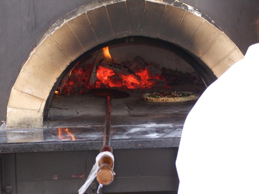 | 持ち帰りだけでも数百枚のピッツァを販売されたとか。コースランチも1時間以上待ちと大変好評でした。 ピザ職人さん一言 「外でやっているから、朝窯が冷え切ってるかなと思っていたら熱くてビックリしました。保温力がすごいね!!薪も良く乾燥しててすぐ火がつくし!!」 |