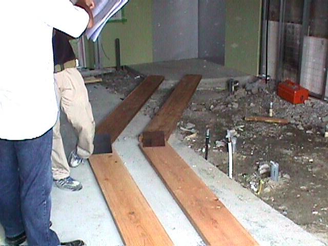 土間に段差がある場合等は、道板を敷きます。(床が仕上がって養生が必要な場合も同様にすると良いです) |